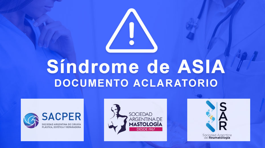 Las recientes menciones en las redes sociales de posibles enfermedades asociadas a la colocación de implantes mamarios, originaron un aumento de consultas por parte de pacientes a los cirujanos plásticos y mastólogos. Es por esto que la Sociedad Argentina de Cirugía Plástica y la Sociedad Argentina de Mastología, en conjunto con la Sociedad Argentina de Reumatología, como sociedades científicas se ven en la necesidad de compartir la siguiente información: