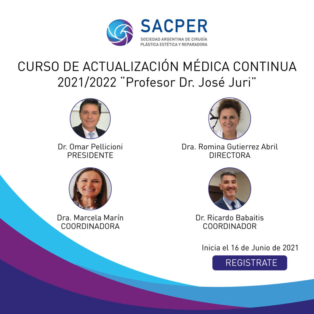 A partir del 16 de junio, iniciará el Curso de Actualización Médica Continua de la Sociedad Argentina de Cirugía Plástica, Estética y Reparadora (SACPER) correspondiente al periodo 2021/2022 y el cual estará dirigido por la doctora Romina Gutiérrez Abril.