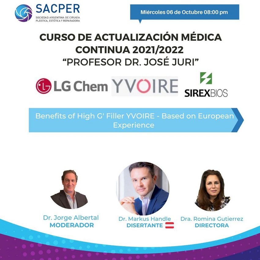 En el marco de su dictado anual, el curso también continuará con una nueva clase, referida a los «Benefits of High G’ Filler YVOIRE –Based on European Experience-«, que será moderada por el doctor Jorge Albertal y contará con la disertación del doctor Markus Handle (Austria) y la participación de Gutiérrez Abril.